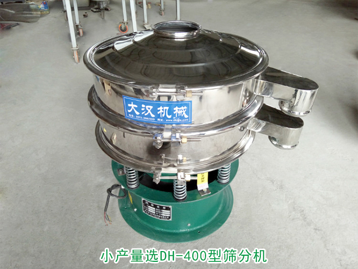 小產(chǎn)量選DH-400型篩分機(jī):篩分直徑為350m/m,功率為0.18kw,每小時(shí)處理量為80kg-150kg。