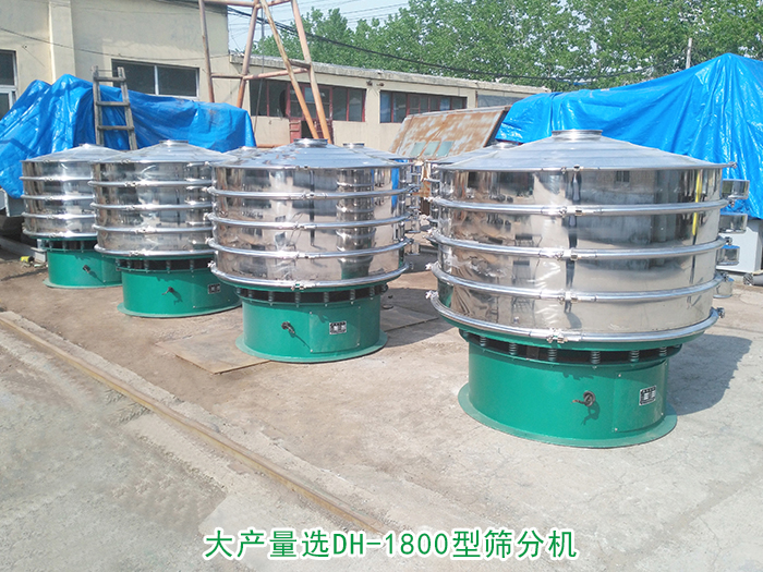 大產(chǎn)量選DH-1800型篩分機(jī):篩分直徑為1720m/m,功率為2.2kw,每小時(shí)處理量可達(dá)到800kg-1500kg。