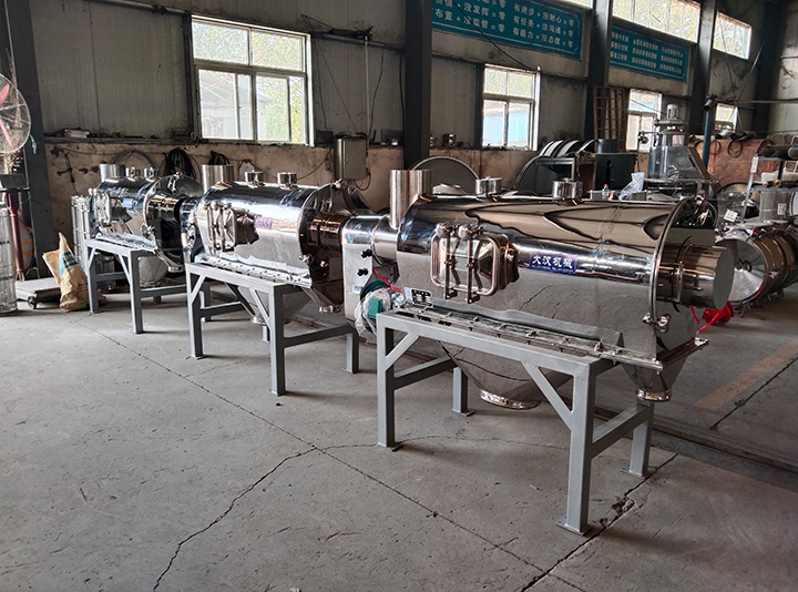 中藥粉臥式氣流篩是微細粉物料篩分的專用篩分機。微細粉物料易粘附、粒徑小、質(zhì)輕、易懸浮等特點;國內(nèi)現(xiàn)有旋振篩,直線篩利用其重力勢,激振力,彈力作業(yè)很難篩分,易引起粉塵飛揚,更難達到技術(shù)要求。針對這一情況,大漢工程技術(shù)人員經(jīng)過多年來研究試制,開發(fā)出專門用于微細粉篩分的新產(chǎn)品――氣流篩。該機適合80-530目有網(wǎng)各種粉狀物料篩選分級,其篩分效率高、產(chǎn)量大、自動進料排料、連續(xù)作業(yè)、無污染,使以往用各種振動篩難以進行高細度精密篩分作業(yè)成為易事。經(jīng)過對120-180目輕鈣、300目重鈣、400目活性鈣、300目山楂粉、320-500目鋅粉、500目氧化鐵黑、氧化鐵紅、120-160目中藥粉、180-270目石英粉等物料的篩分使用,測得每平方米篩網(wǎng)面積每小時產(chǎn)量均在一噸左右,同時測得篩分效率在95%以上,空氣含塵量低于10mg/m3。