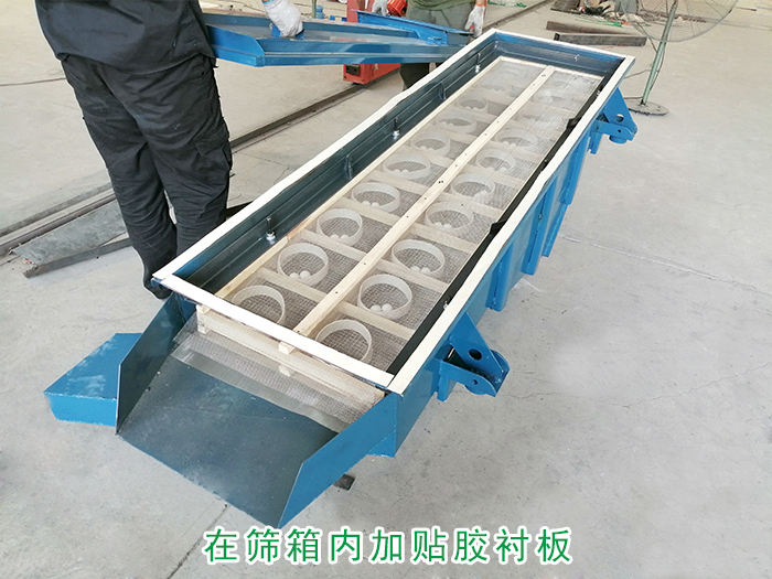 可在篩箱的側(cè)板、入料給料口、排料口內(nèi)加貼橡膠襯板,可以有效地抑制篩分機側(cè)板的高頻振動,減少輻射噪聲;在篩箱結(jié)構(gòu)的設(shè)計中,要考慮到篩箱的剛度,采用合適的側(cè)板剛度來減小振動,降低中低頻噪聲波。