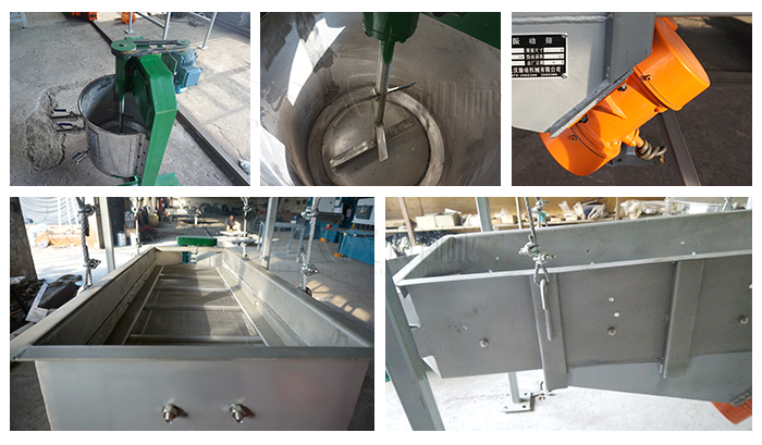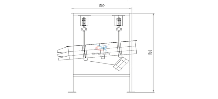 整個(gè)設(shè)備由篩箱、網(wǎng)架、篩網(wǎng)、2臺(tái)臥式振動(dòng)篩電機(jī)、減震彈簧、進(jìn)出料口、上蓋組成,除此之外還有高度可按需求定制的支架通過四個(gè)吊鉤把整個(gè)設(shè)備吊掛起來使其處于懸空狀態(tài)。
