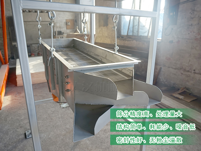 吊掛式直線振動(dòng)篩分機(jī)是大漢機(jī)械根據(jù)特殊客戶要求定制的可懸空的篩分設(shè)備,可節(jié)省篩分現(xiàn)場的空間使用,下面小編就為大家具體介紹下它: